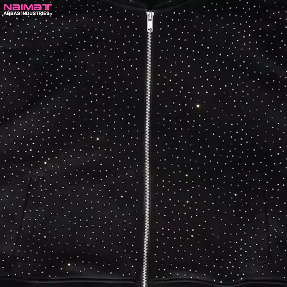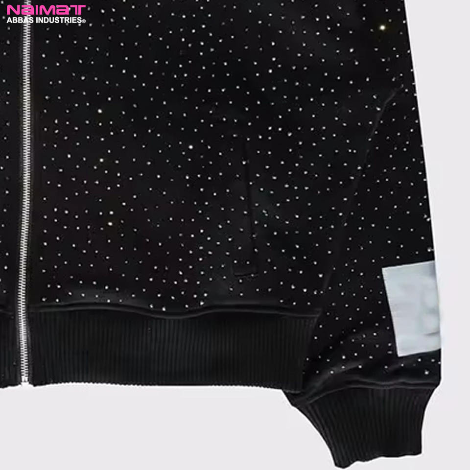 Meilleures ventes Arrivée hivernale Sweat-shirts à capuche surdimensionnés en molleton épais 100% coton pour hommes Fermeture éclair Strass Séchage rapide Respirant Personnalisable