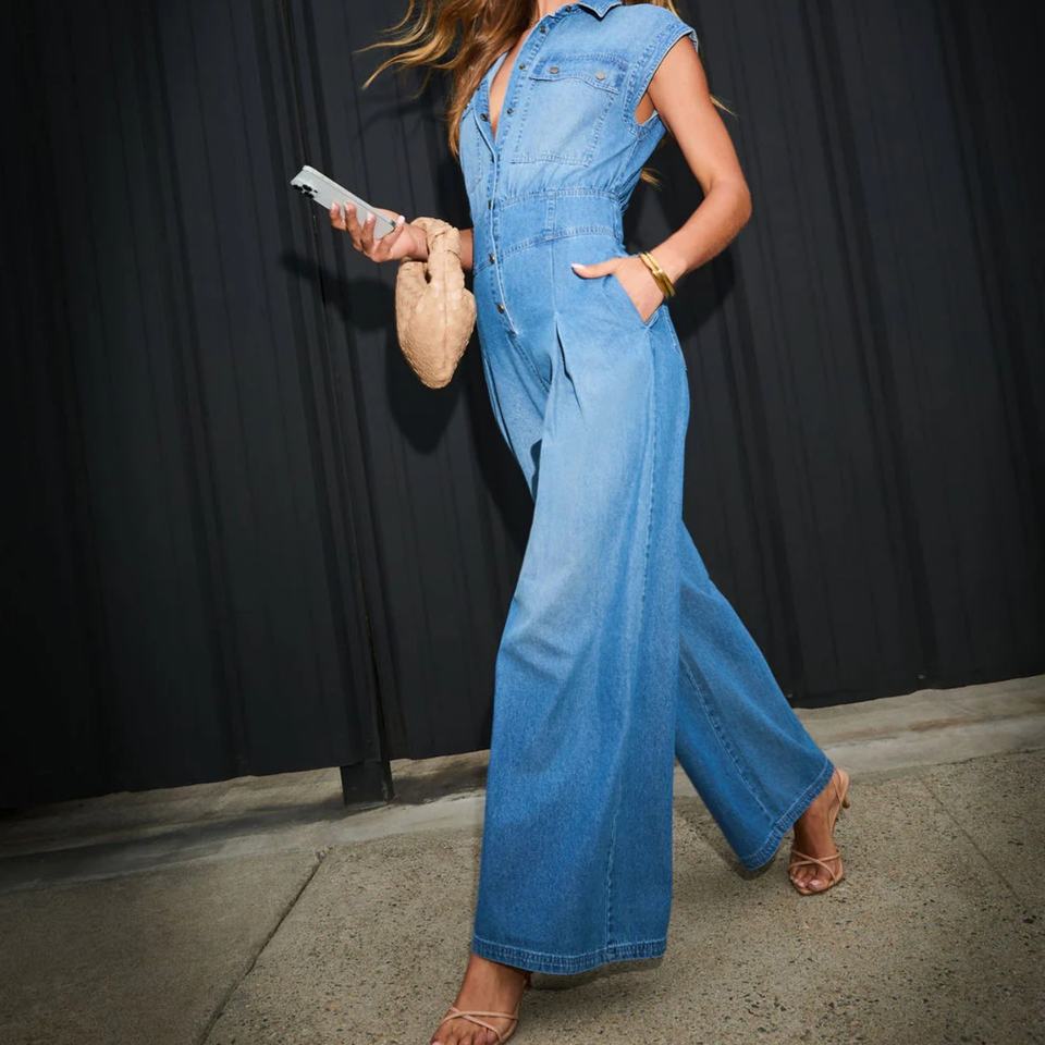 Combinaisons en jean pour femmes les plus vendues, boutonnées avec poches, style décontracté streetwear, combinaisons cargo en jean une pièce