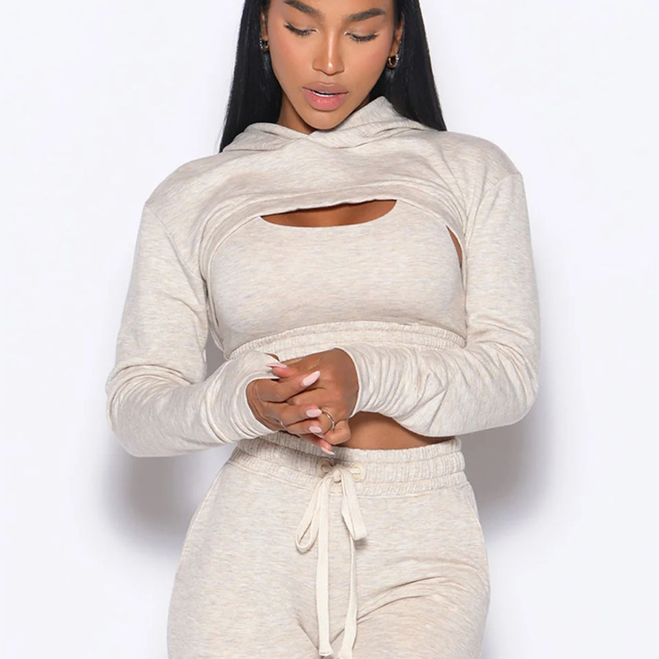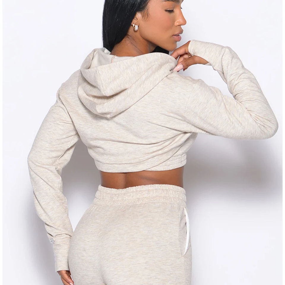 Best Selling Women's Heather Oatmeal Sweat Bolero Hoodie Anti-Wrinkle Breathable Zip-Up Winter Workout Casual Style Front Logo