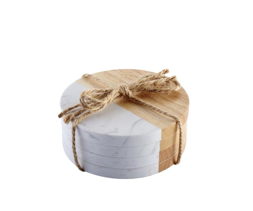 Ensemble de 4 sous-verres en bois et marbre luxueux - Ensemble de sous-verres en marbre pour la maison, l'hôtel et la restauration - Vaisselle de table