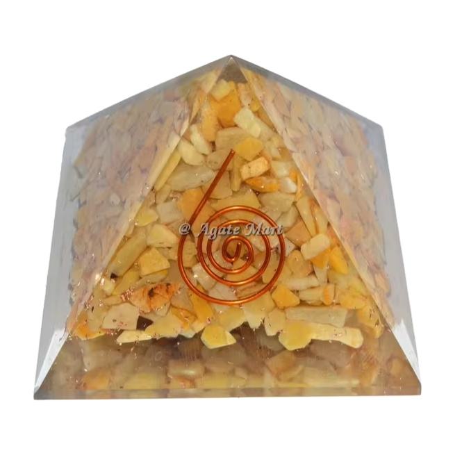 Best Selling Yellow Flower Life Agate EMF Protection Orgonite Pyramid Semiprecious Crystal Quartz Chakra Feng Shui Love Crystal