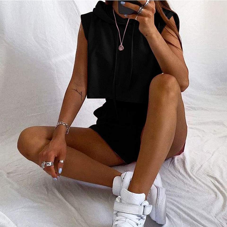 Survêtement 2 pièces en coton uni pour femmes, haut court et design personnalisé, ensemble de sport à la mode