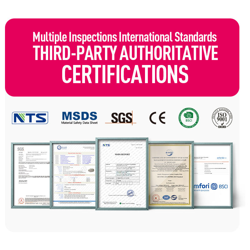 Certificat:ISO9001, BSCI, FDS (Fiches de Données de Sécurité), RoHS
