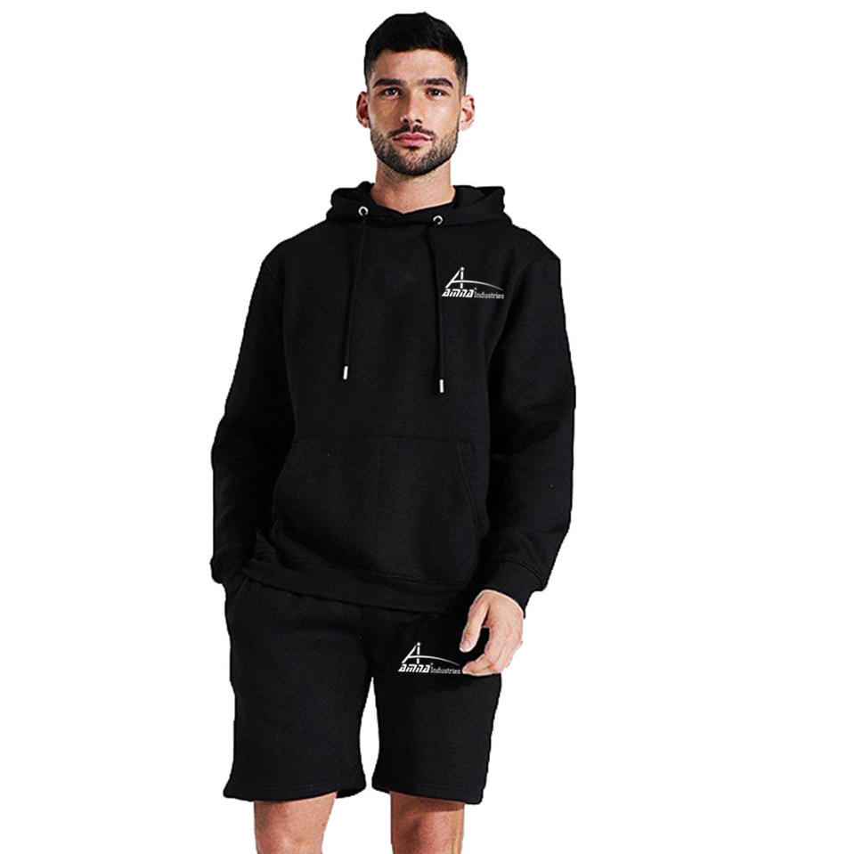 Ensemble sweat à capuche en molleton pour garçon, pull à manches longues, couleur noir pur, set de course, meilleure vente