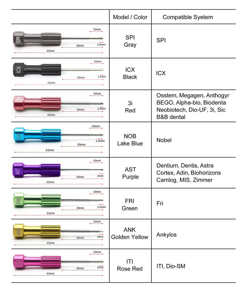 Meilleure norme 8 pièces Kit de tournevis pour technicien de laboratoire dentaire Ensemble d'outils d'implant de pilier Ensemble de tournevis de laboratoire