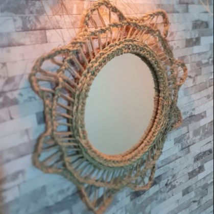 Meilleur miroir en rotin en forme d'étoile Miroir mural décoratif tissé design grande taille fait main pour une décoration intérieure élégante