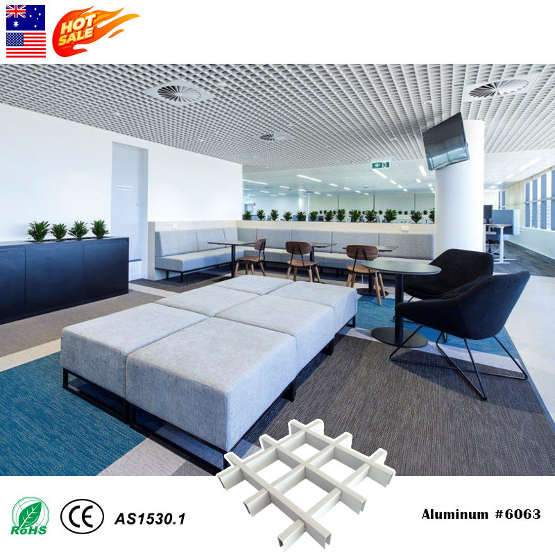 Meilleur fournisseur de grille de plafond en aluminium ignifuge à cellules ouvertes pour chambre à coucher, salle de bain, extérieur, hôtel, centre commercial 600x600