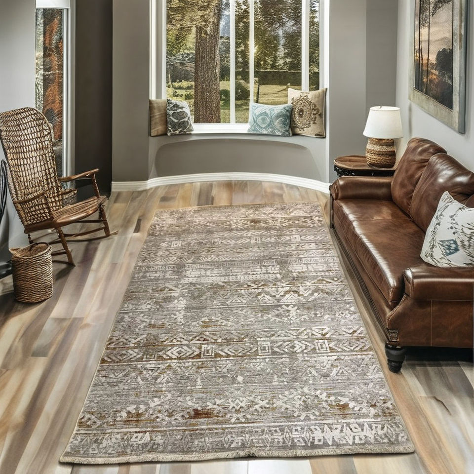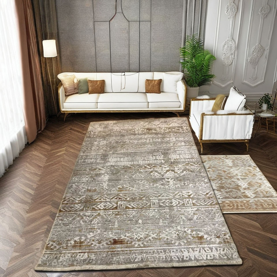 Meilleur tapis d'intérieur doux en polyester à double boucle, style oriental turc, motif floral, idéal pour la maison et les voyages, pour la décoration intérieure