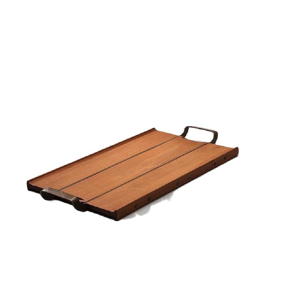 Plateau de service en bois de manguier de style moderne design vintage tendance avec poignée en métal couleur de forme de taille personnalisée