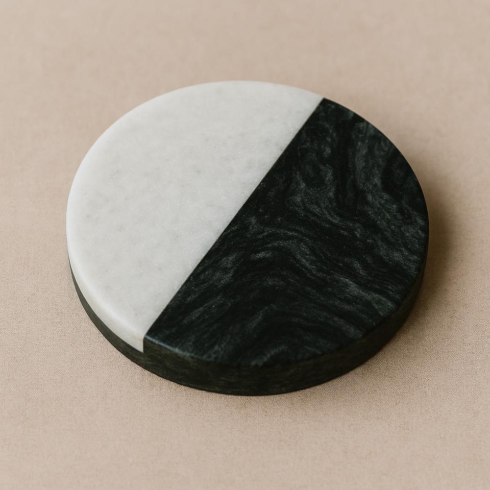 Meilleur dessous de verre en marbre deux tons rond noir et blanc pierre boisson Pad élégant décor de table pour la maison cuisine Bar moderne minimaliste