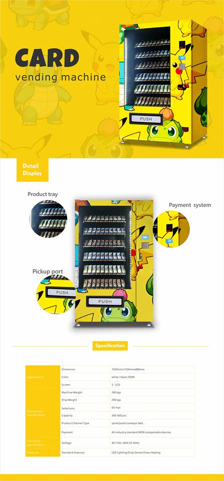 Meilleure machine distributrice de cartes Pokémon avec grande capacité et prise en charge de plusieurs systèmes de paiement.