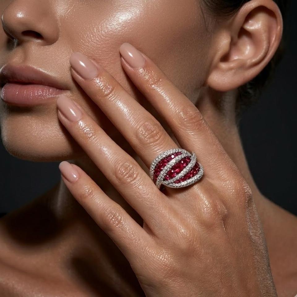 Bagues en or blanc massif 18 carats de haute qualité avec grappe de rubellites, design classique unique, pour femme, de la meilleure qualité