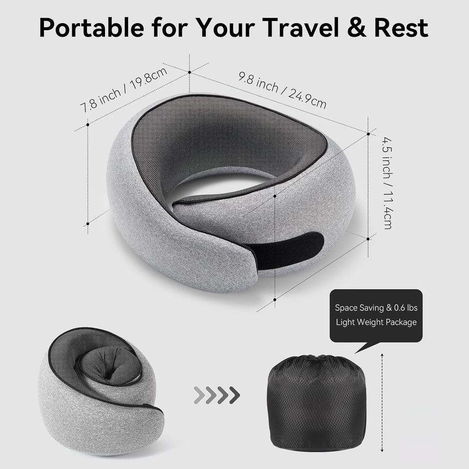 Idéal pour dormir en avion, en voiture, en train, au bureau, en voyage, oreiller de voyage en mousse à mémoire de forme 100% pure, soutien du cou en avion