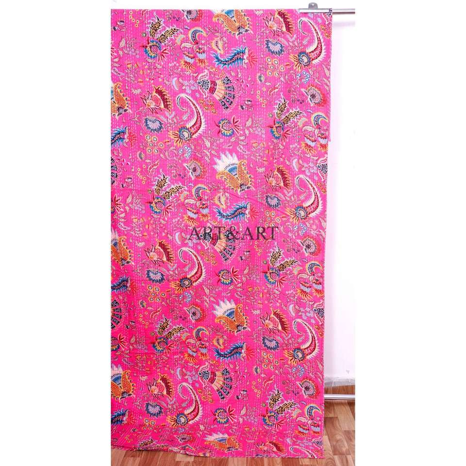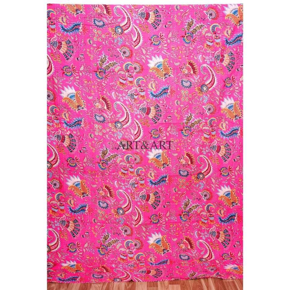 Couvre-lit Kantha fait main ART&ART KQ-41(A) de qualité supérieure, 100% coton, imprimé à la main, motif floral, poids du tissu 220g