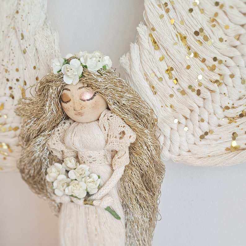 Tenture murale de poupée en macramé faite à la main de meilleure qualité, tapisserie en coton tissé de style bohème, accent de décoration intérieure unique pour le salon