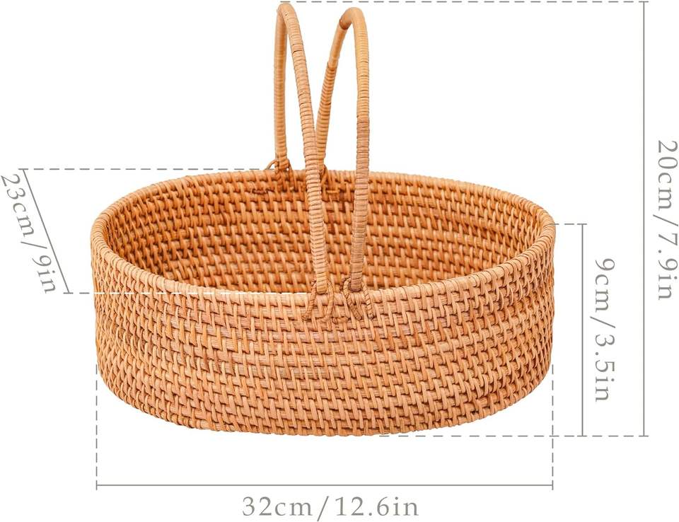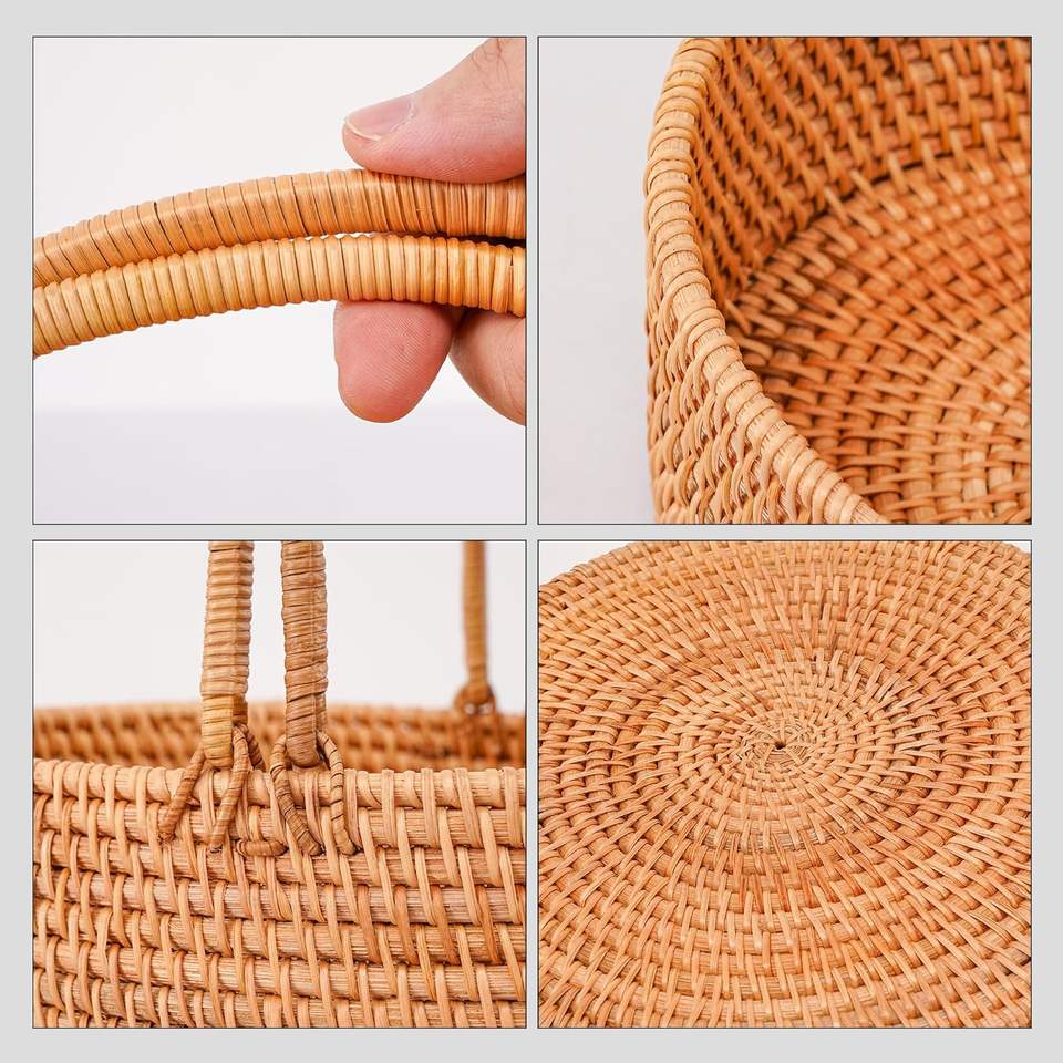 Panier de pique-nique en rotin de meilleure qualité avec poignées Panier ovale en osier tissé à la main pour panier de fruits