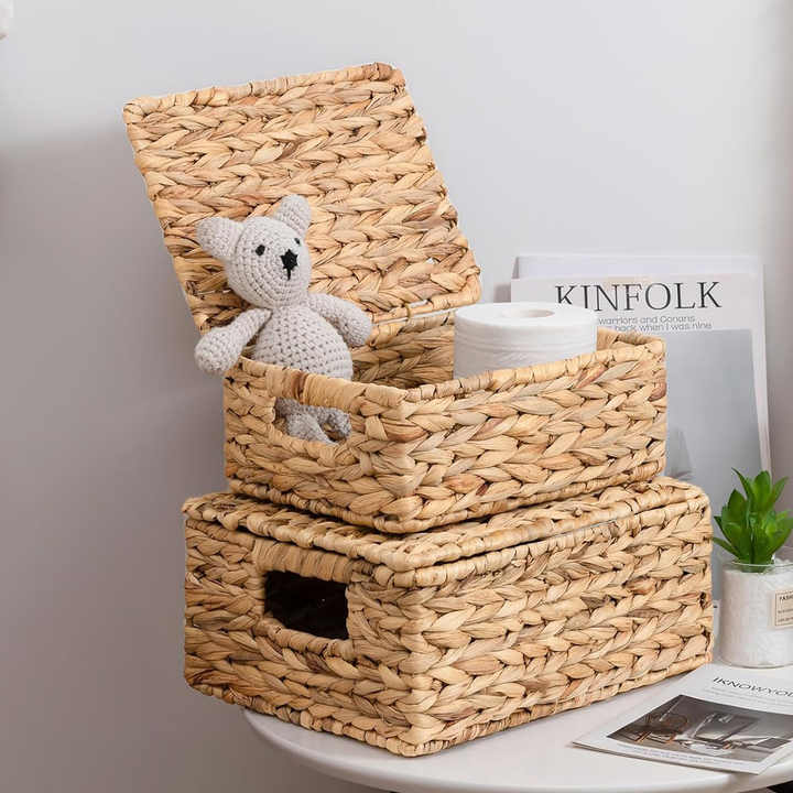 Boîtes en jacinthe d'eau de qualité supérieure, tissées à la main, pour le rangement sur le comptoir de cuisine