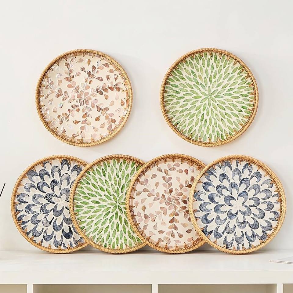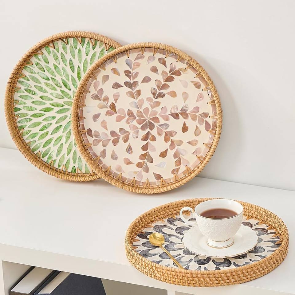 Best quality rattan mother of pearl tray for wedding banquet event setting handmade MOP trays