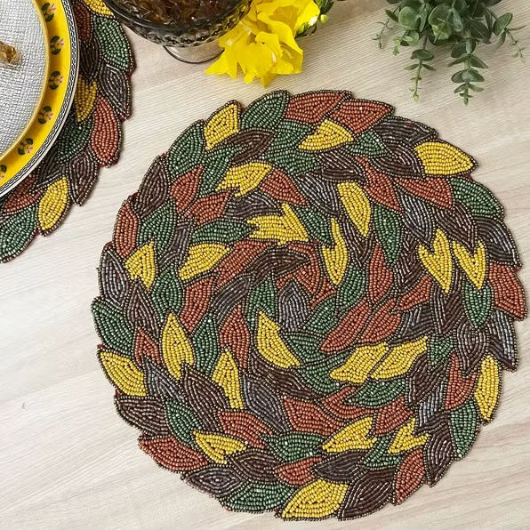 Best Seller Handmade Beaded Placemats Set of 6 Eco-Friendly Embroidery Wedding Table Decor Customizable Luxury Indian Style