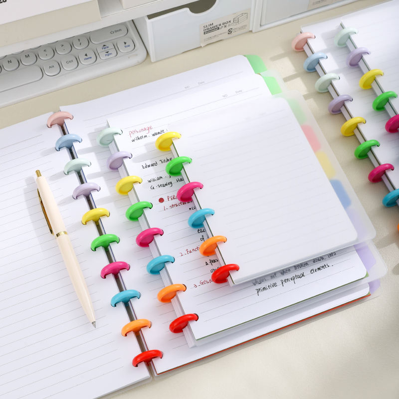 Pages intérieures personnalisables les plus vendues-80 pages A6 Cahier à feuilles mobiles à boucle en forme de champignon coloré pour une utilisation quotidienne.