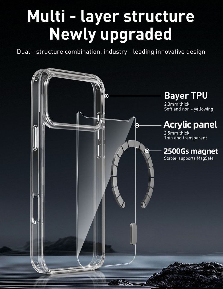 Coque de protection magnétique en acrylique anti-jaunissement haute transparence et de haute qualité, la plus vendue pour iPhone