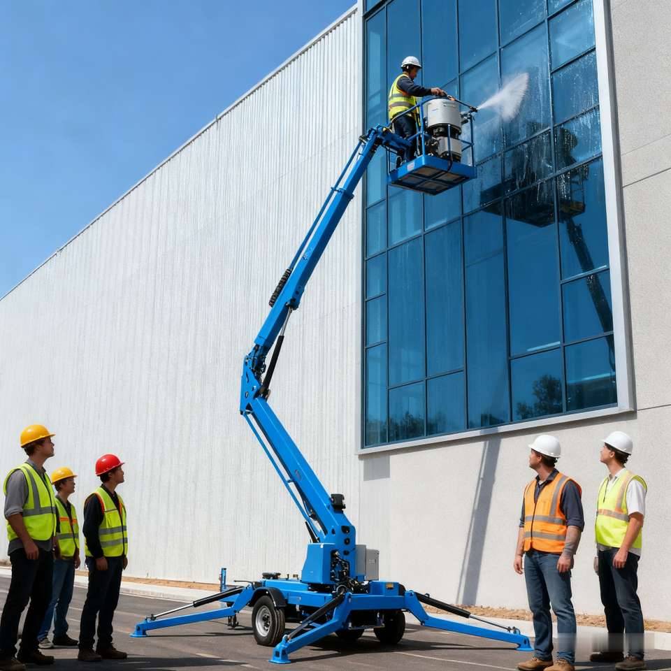 Plateforme de travail télescopique en aluminium et acier de haute sécurité montée sur remorque, 16 m, électrique, best-seller