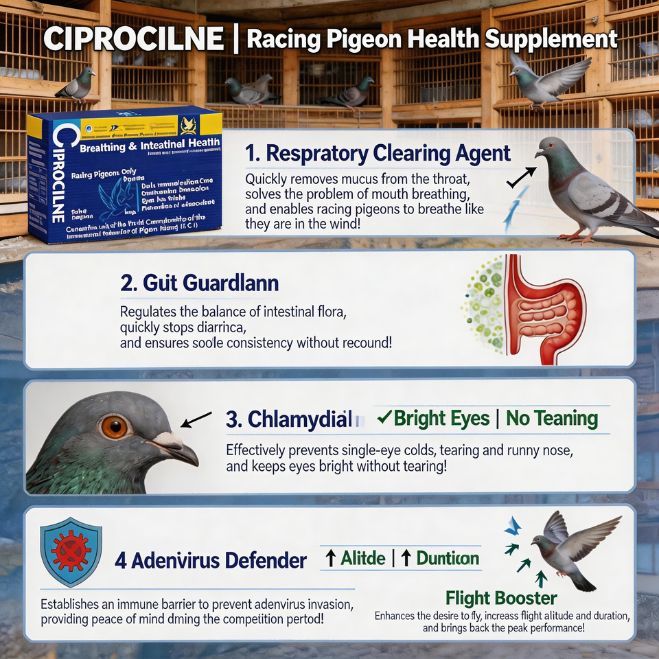 Poudre de mélange pour la santé respiratoire et intestinale des pigeons de course, best-seller, 5g/sachet, pour des yeux brillants et la protection contre l'adenovirus