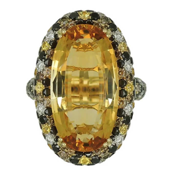 Meilleure bague de mariage en or pur 18 carats avec diamants Moissanite jaunes fantaisie et diamants ovales