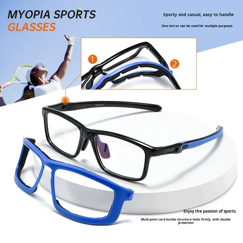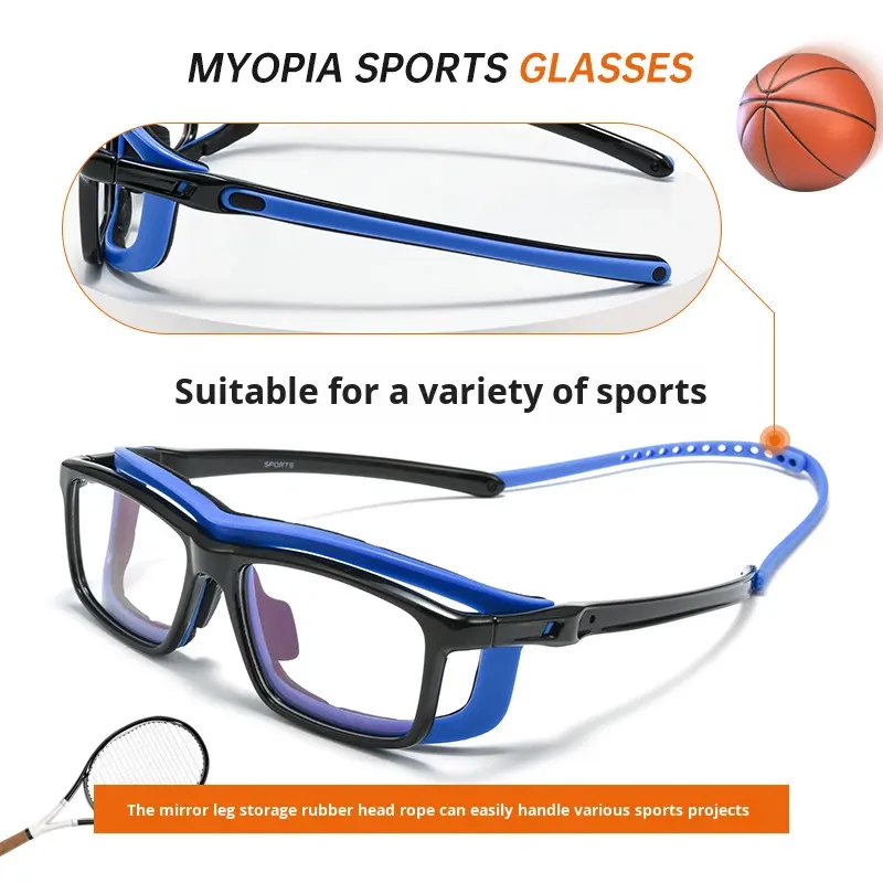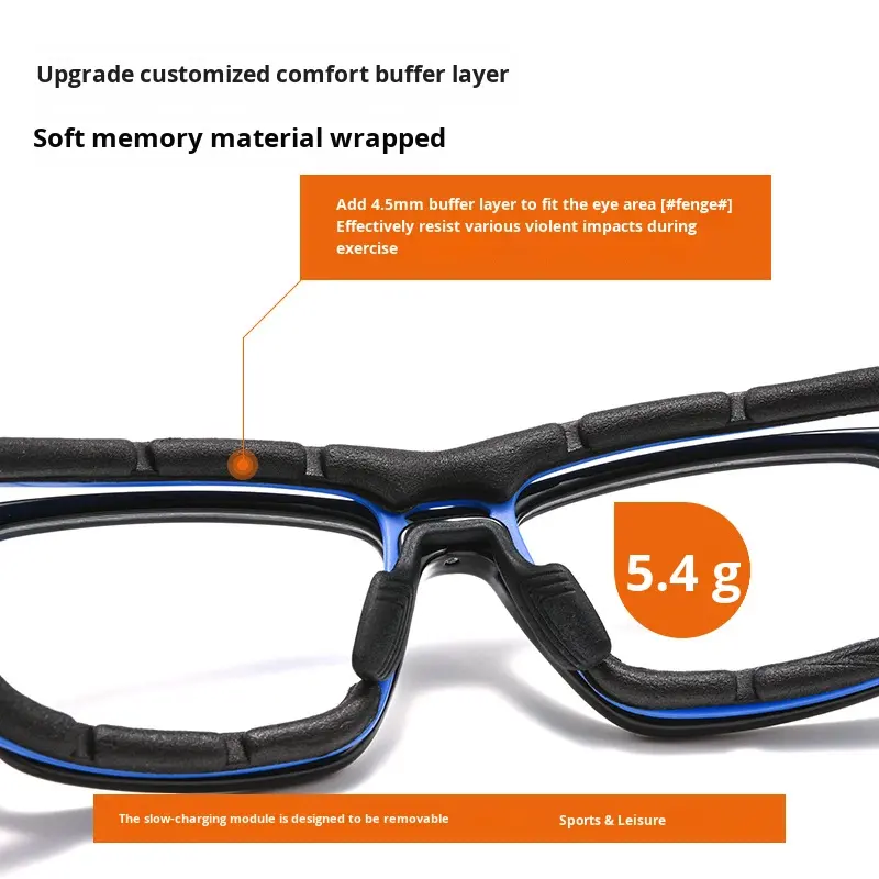 Lunettes de sport carrées grandes pour hommes Bestfen, style punk, monture imprimée HG031, anti-collision, pour l'extérieur, compatibles avec des verres de prescription