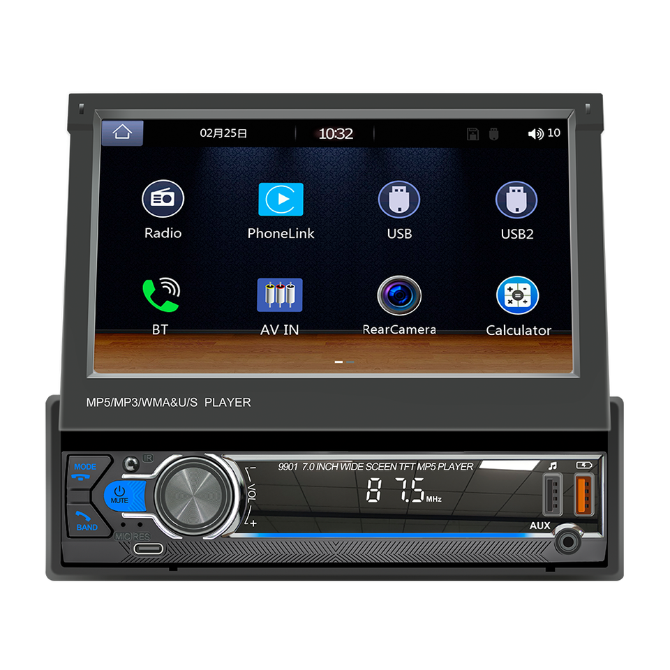 Bestree auto electronics 7 pouces écran rétractable simple 1 din voiture lecteur mp5 avec filaire carplay autoradio carplay stéréo auto