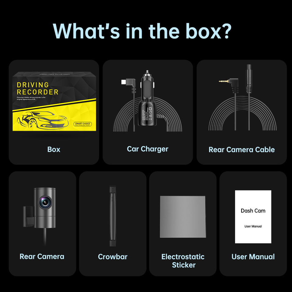 Vision nocturne, Contrôle de l'application, Enregistrement en boucle, G-sensor, Moniteur de stationnementUsage spécial