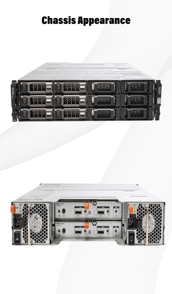 Serveur de stockage NAS Dell PowerVault MD1400 le plus vendu avec des disques durs SAS Dell de 300 Go et une alimentation de 2700 W.