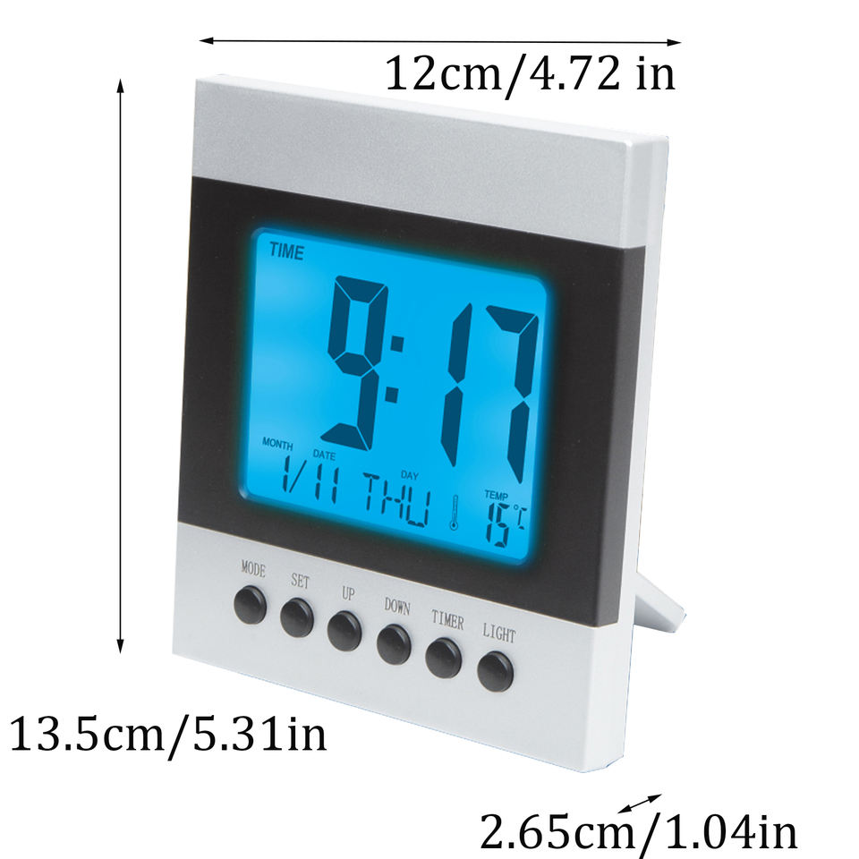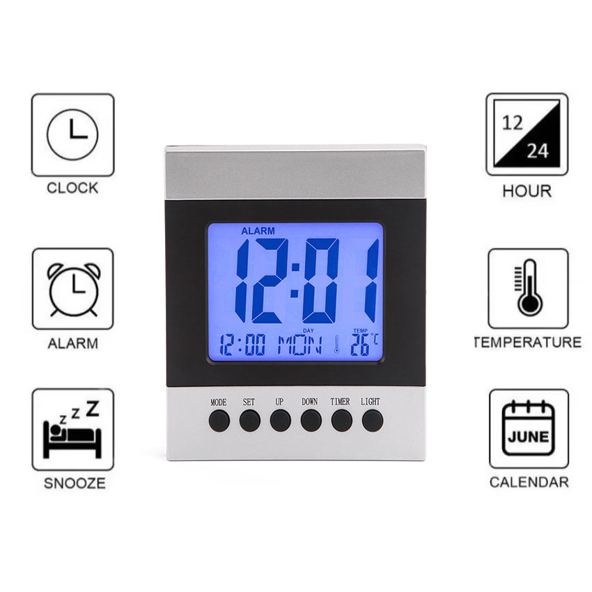 Functions:Time, Alarm, Calendar, Snooze, Timer, Temperature