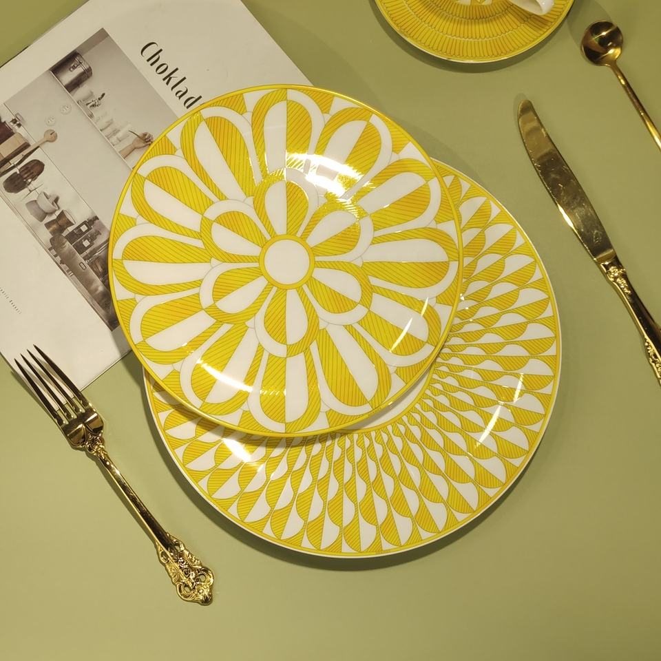 Service de table classique jaune de luxe de style européen, best-seller, et assiettes en céramique