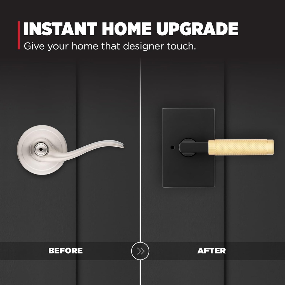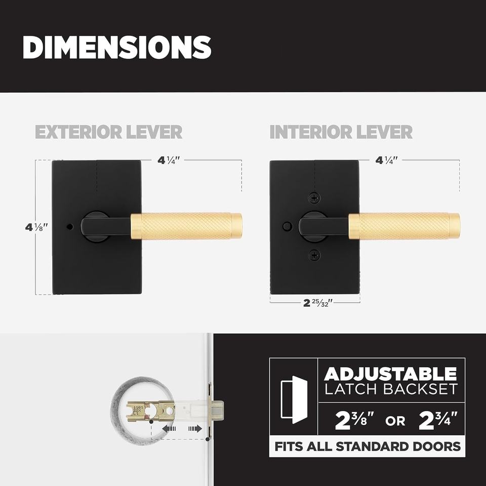 Poignée de porte carrée en alliage de zinc au design moderne, best-seller, serrure sans clé, finition noire mate/nickel brossé/or pour intérieur