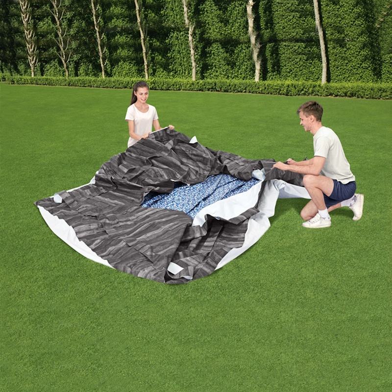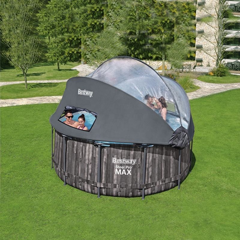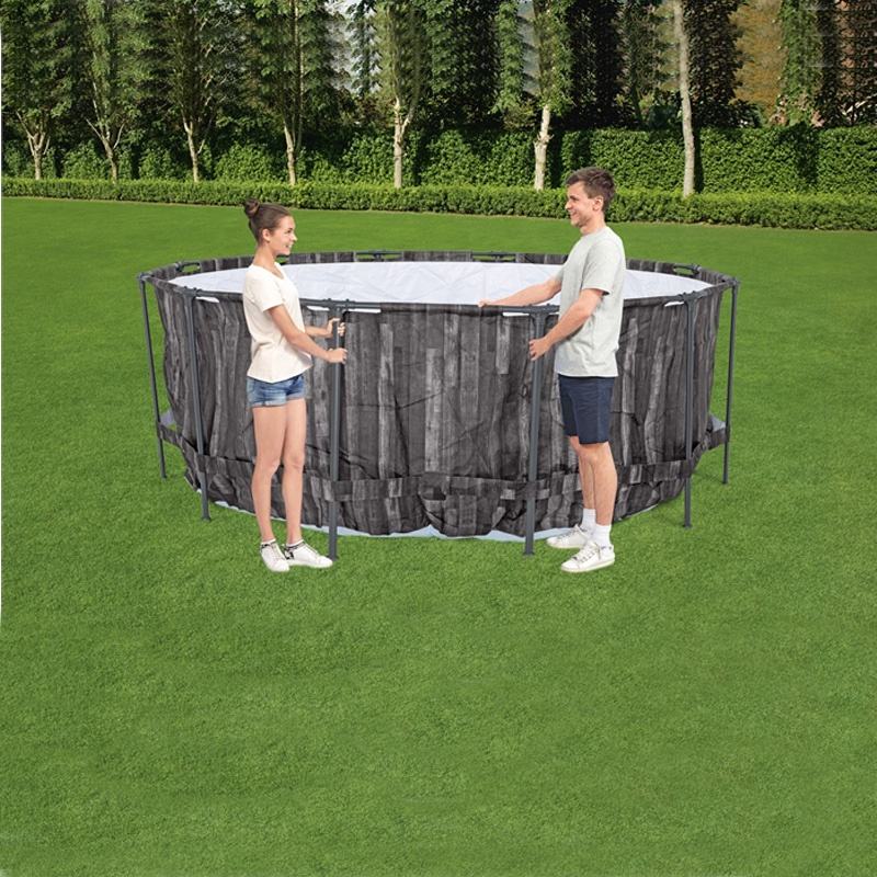 Piscine hors sol ronde Bestway 5619K avec cadre en bois grainé et couverture pour adultes