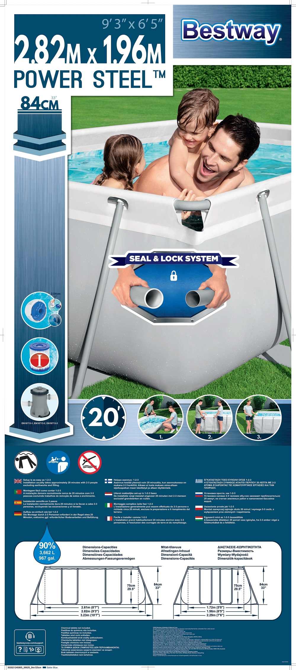 Piscine rectangulaire hors-sol Bestway 56629 Power Steel, 2,82 m x 1,96 m x 84 cm
