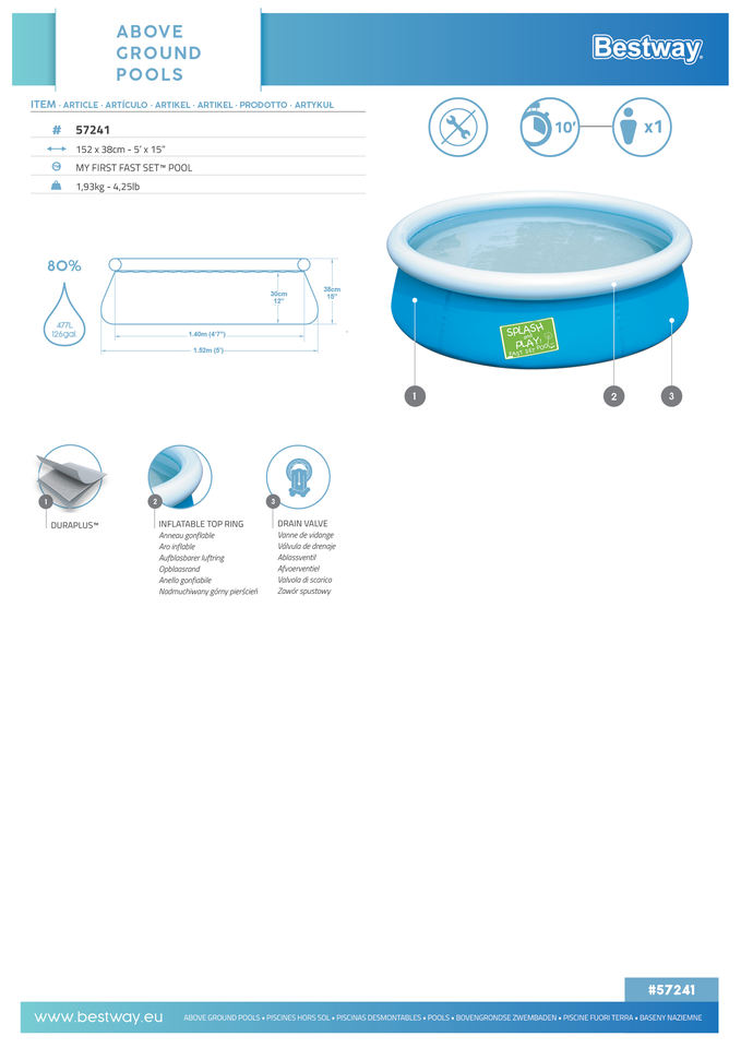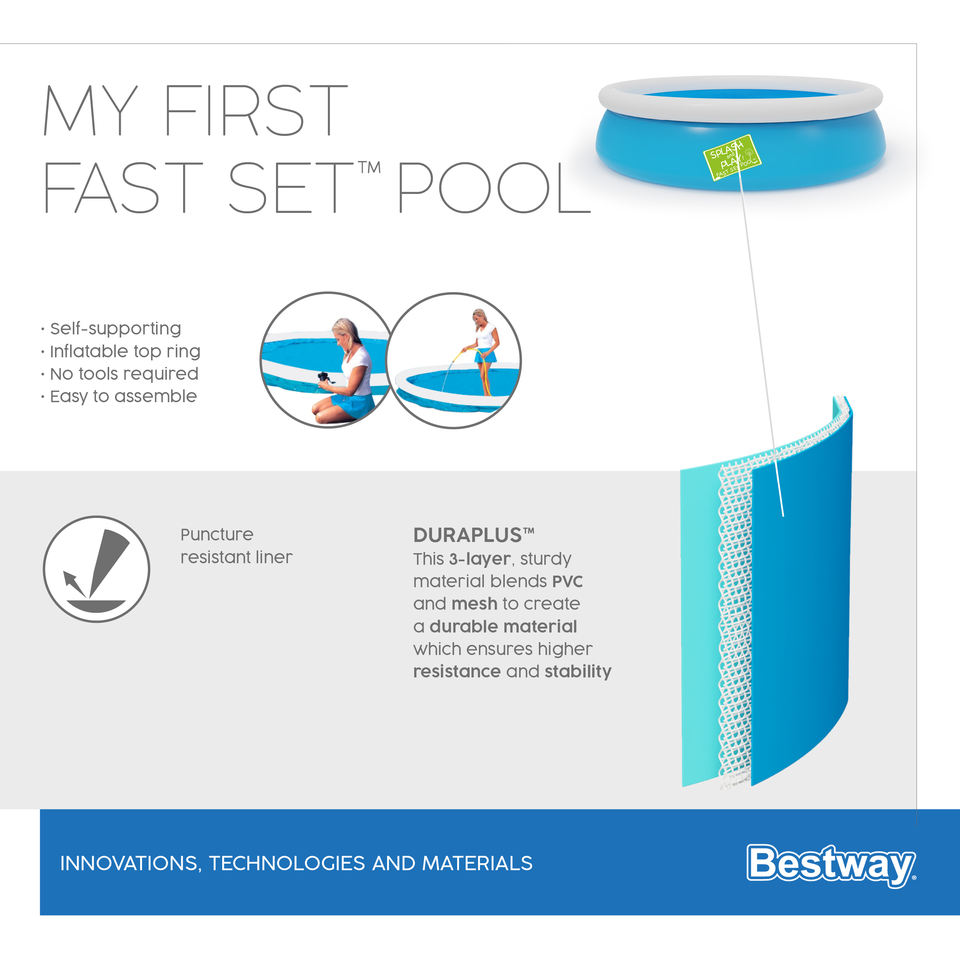 Bestway 57241 My First Fast Set Piscine Gonflable Ronde en PVC 1.52 m X 38 cm Mini Piscine Extérieure pour Enfants