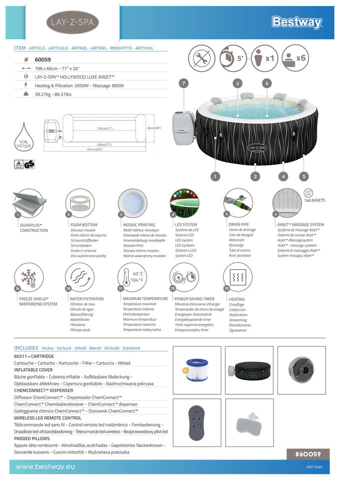 Nom du produit:Bestway 60059 Gonflable Chaleur Piscine Équipement De Massage Spa Baignoires Ensemble