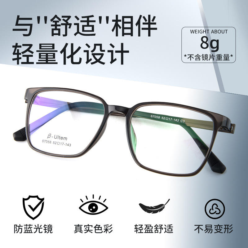 Lunettes de vue carrées Beta Ultem 67058 unisexe, légères, monture complète, protection contre la lumière bleue, fabriquées à Danyang