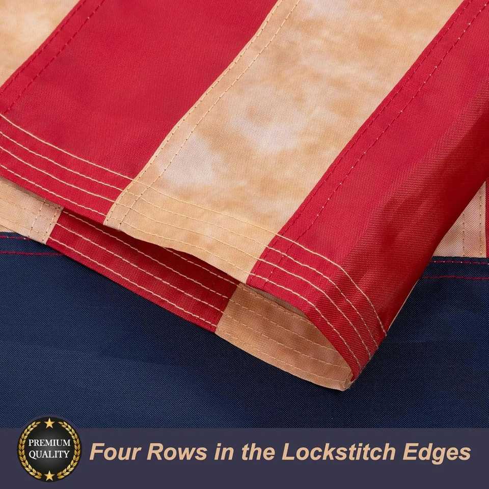 Drapeau américain vintage Betsy Ross 3x5 pieds, teinté au thé, robuste, brodé, 13 étoiles, pour extérieur, commémoration du 250e anniversaire, en plastique
