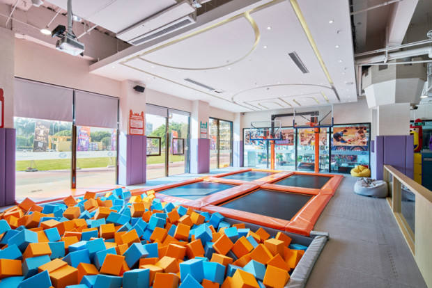Parc d'attractions commercial intérieur, parc de trampolines, parc de sports