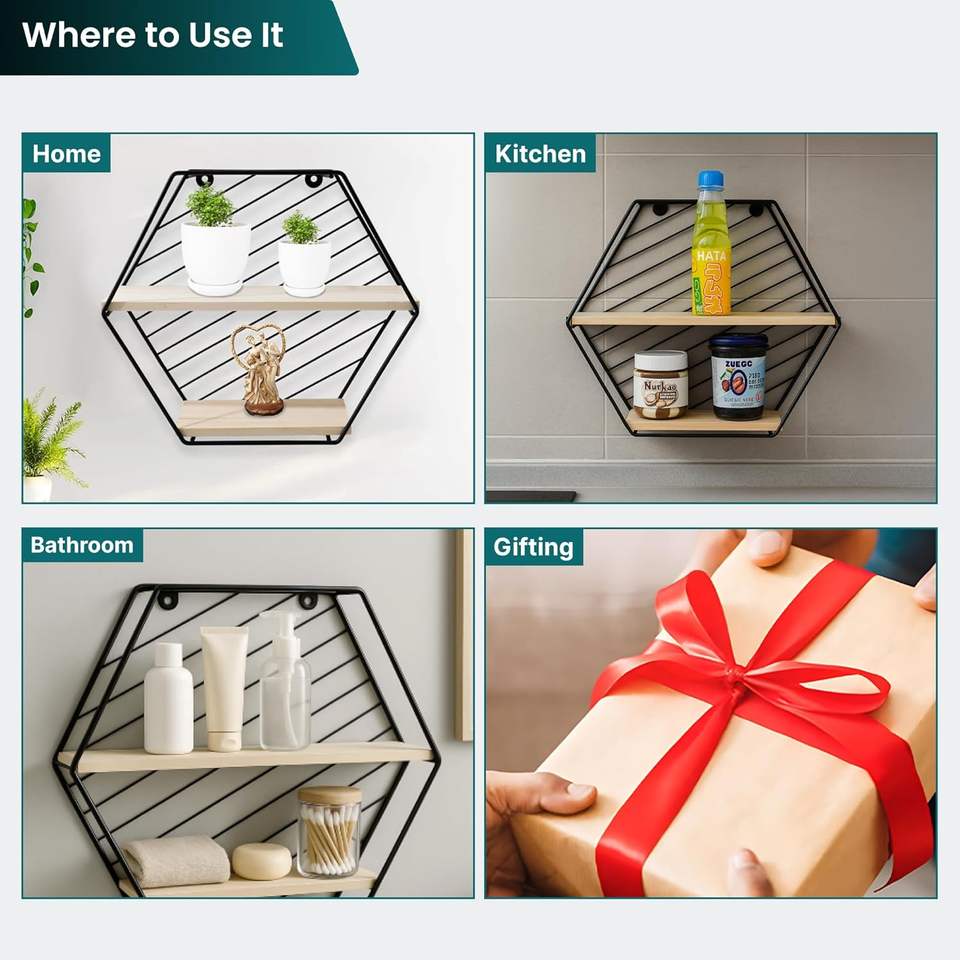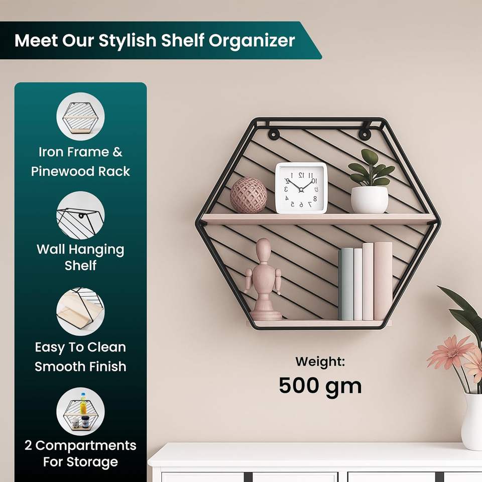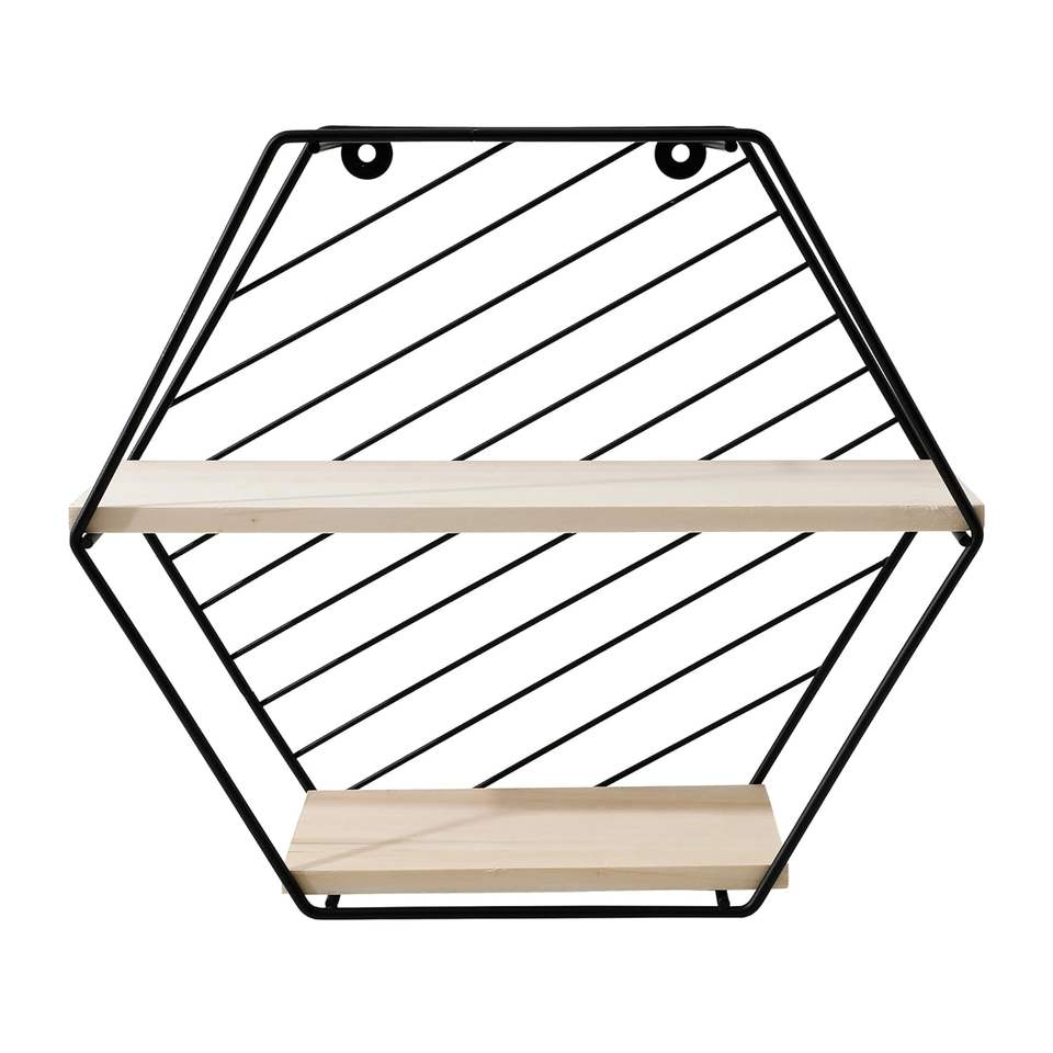 Étagère murale suspendue Better Home à deux compartiments en forme de losange, cadre en fer, étagère murale en bois de pin pour salon, chambre à coucher