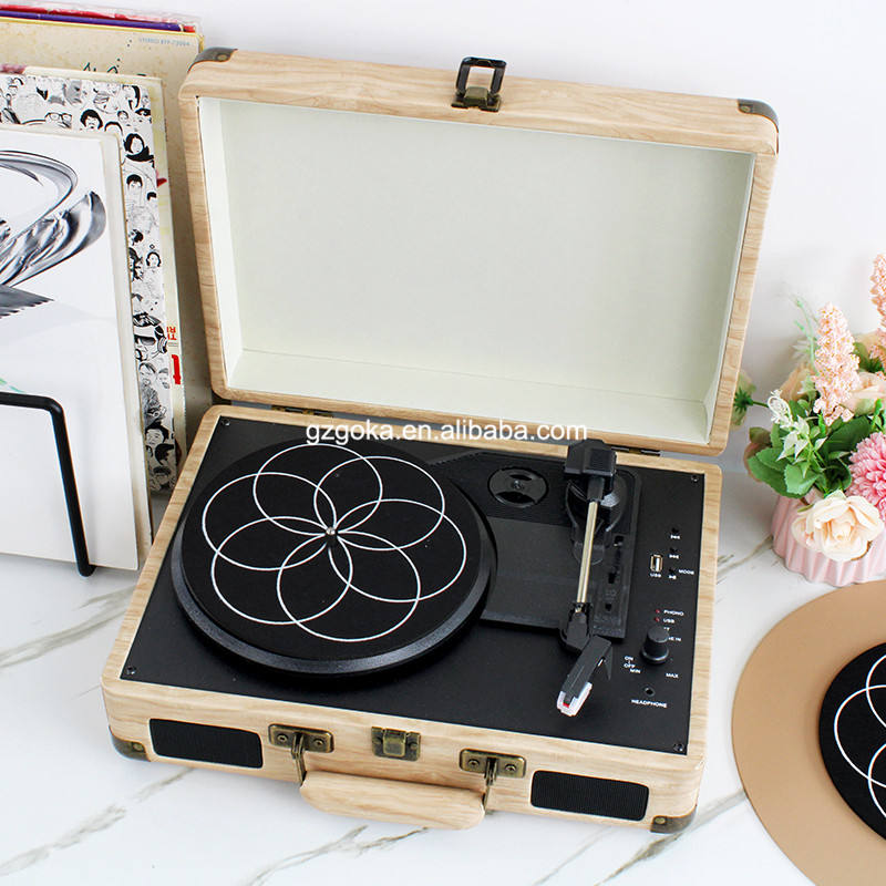 Tourne-disque vinyle 3 vitesses de qualité supérieure, couleur bois, avec revêtement en cuir PU, à entraînement par courroie