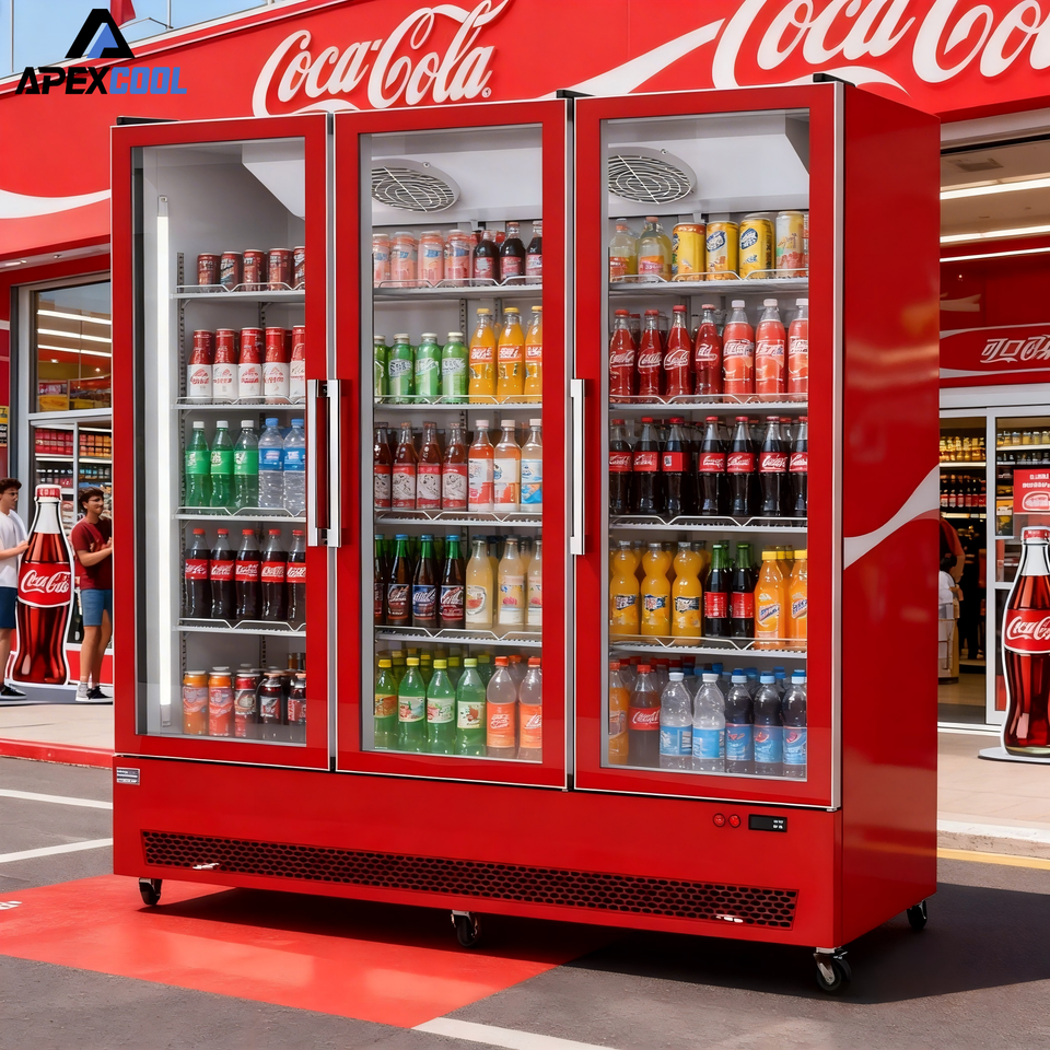 Vitrine réfrigérée pour boissons avec 3 portes vitrées, réfrigérateur commercial avec congélateur vertical