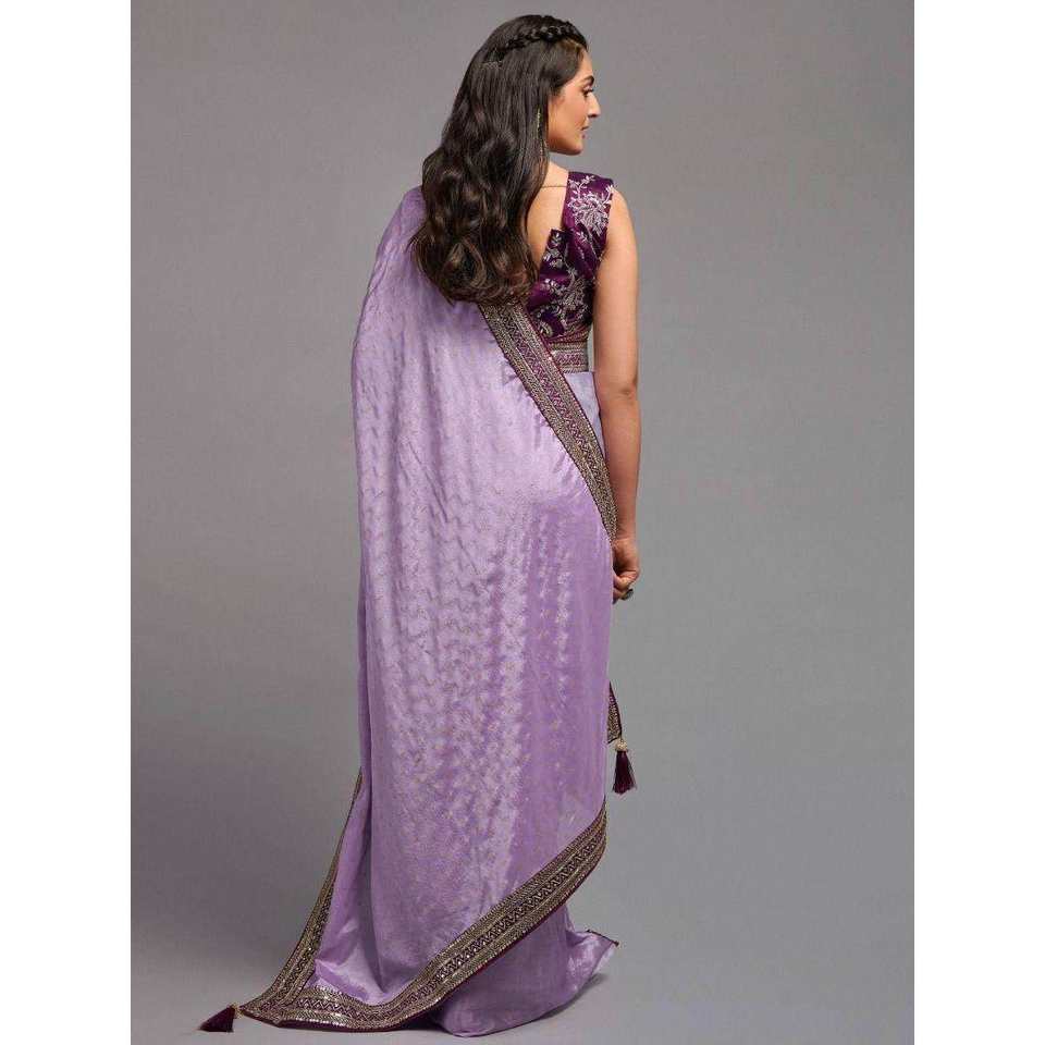 Bewitching Lavender Heavy Lace Border Chinon Saree Elegant Wedding Apparel with Intricate Detail