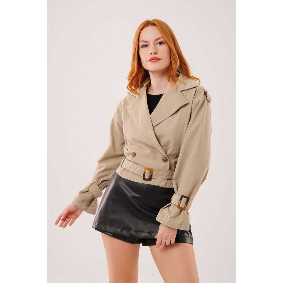 Manteau trench court croisé ceinturé pour femme Bey, manches longues, tissé, coupe-vent, toutes saisons, style utilitaire