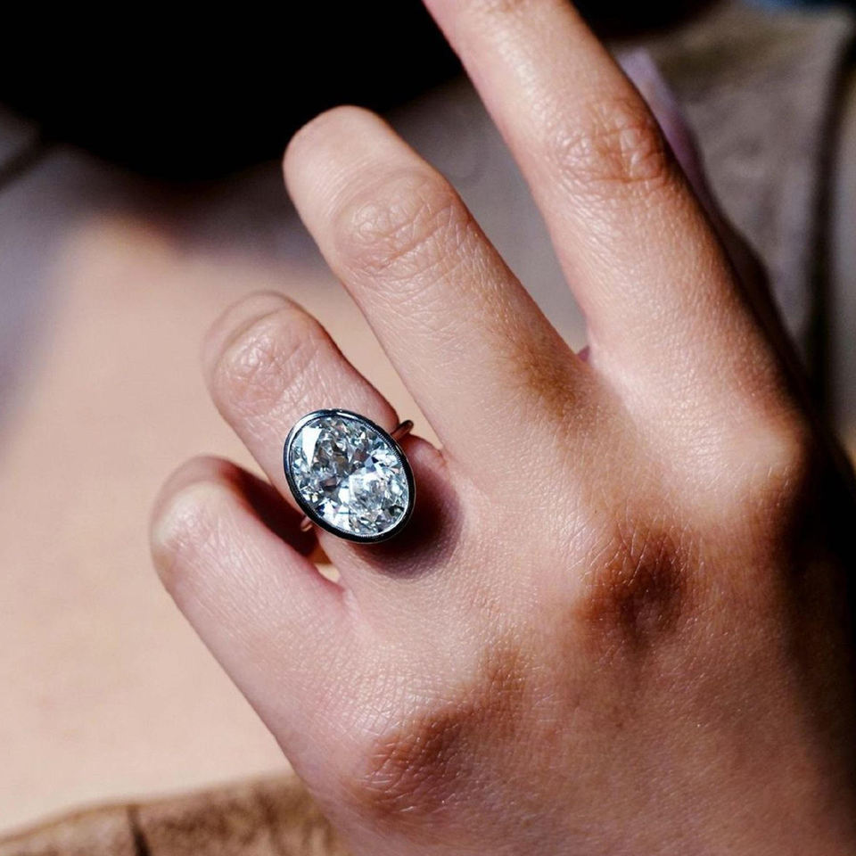 Bague de fiançailles Art Déco sertie clos de diamants ovales de 7 carats, solitaire allongé effet glace pilée, bagues de mariée de luxe en pierres précieuses