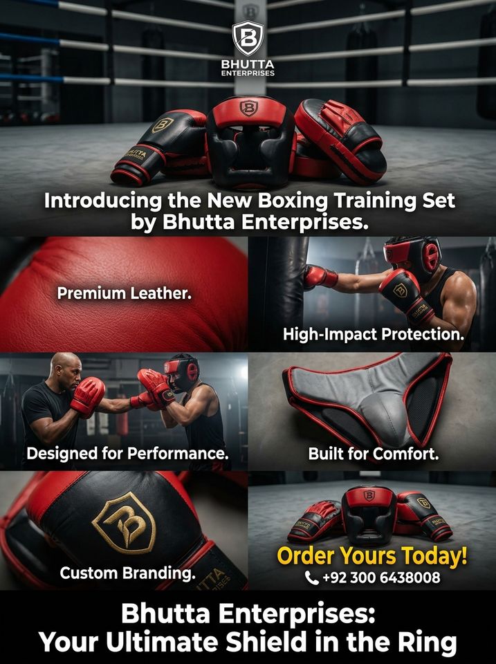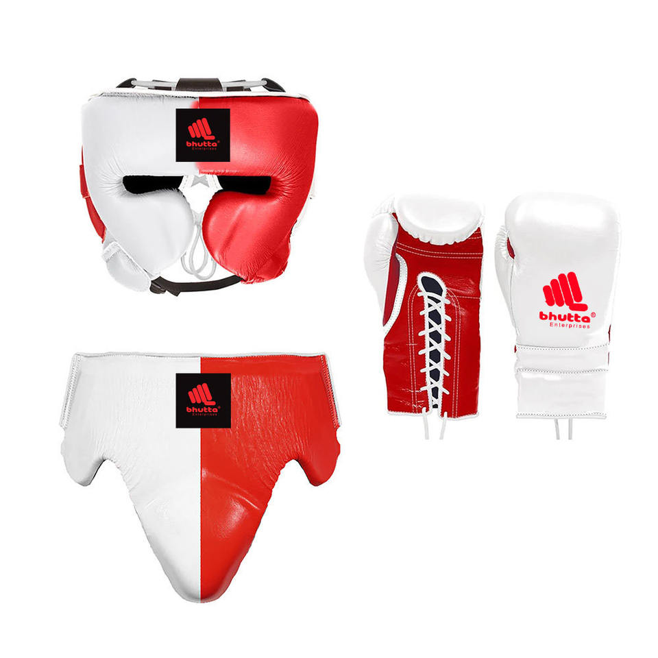 Ensemble d'entraînement de boxe professionnel Bhutta Enterprises, gants de sparring en cuir bicolore avec gants de boxe assortis, protège-glandes et protège-tête