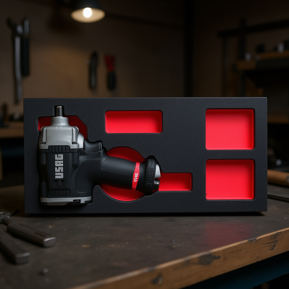 Étui à outils en mousse bicolore avec clé à chocs – Produit d'occasion